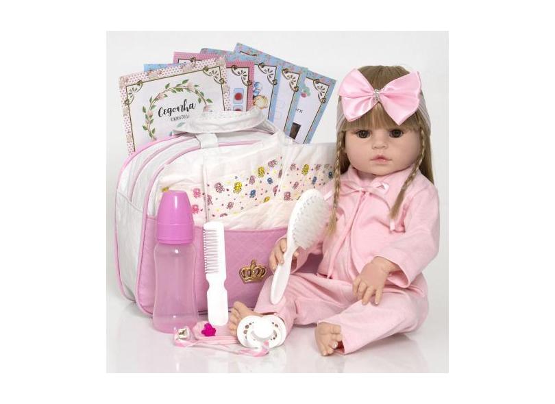 Bebê Reborn Barata Menina Loira Silicone Laura 20 Acessórios - Cegonha