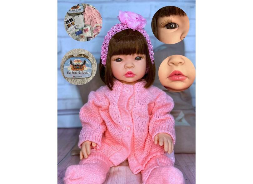 Bebe Reborn Boneca bk 100% Silicone Castanho Rosa Enxoval