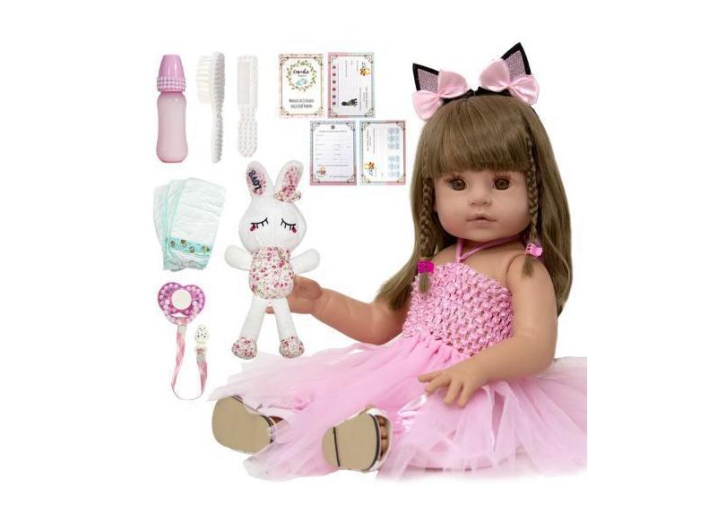 Bebê Reborn Boneca Cabelos Castanhos Enxoval Banho Npk Doll