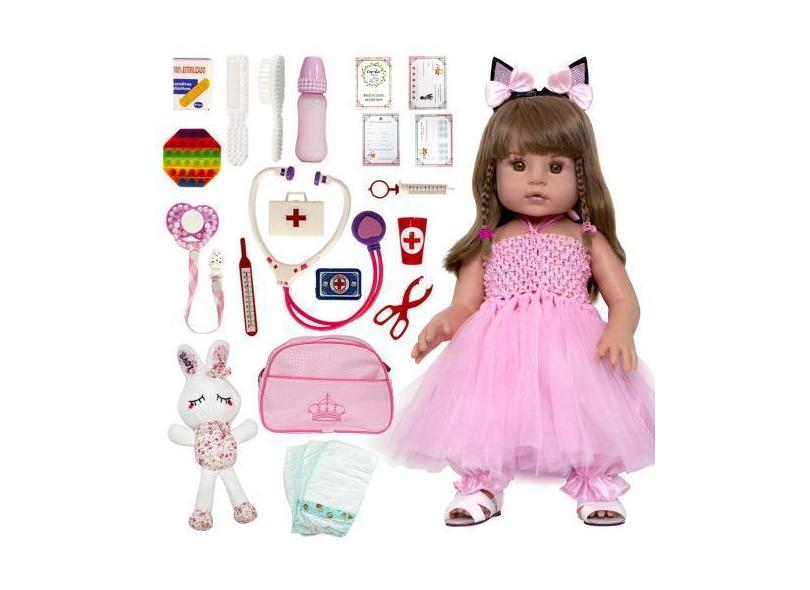 O menor preço encontrado no Brasil para Bebê Reborn Boneca Cabelos Castanhos Enxoval Completo Npk - Npk Dolls atualmente é R$ 266,59.