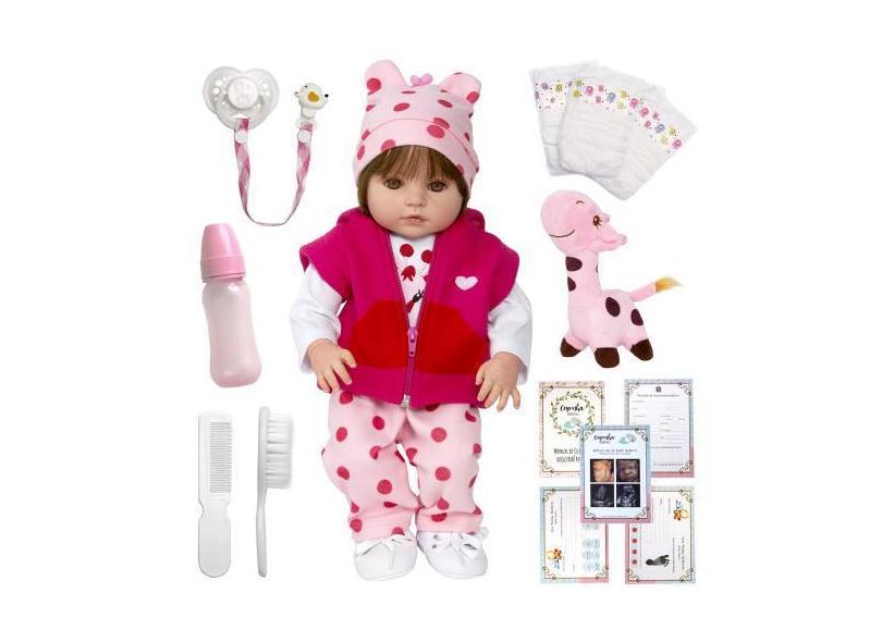 Bebê Reborn Boneca Girafinha Corpo De Silicone 27 Acessórios - Cegonha