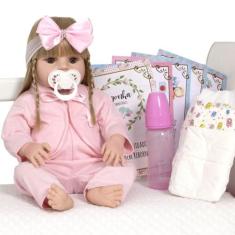 Bebe Reborn Boneca Realista Silicone Menina Enxoval Loira