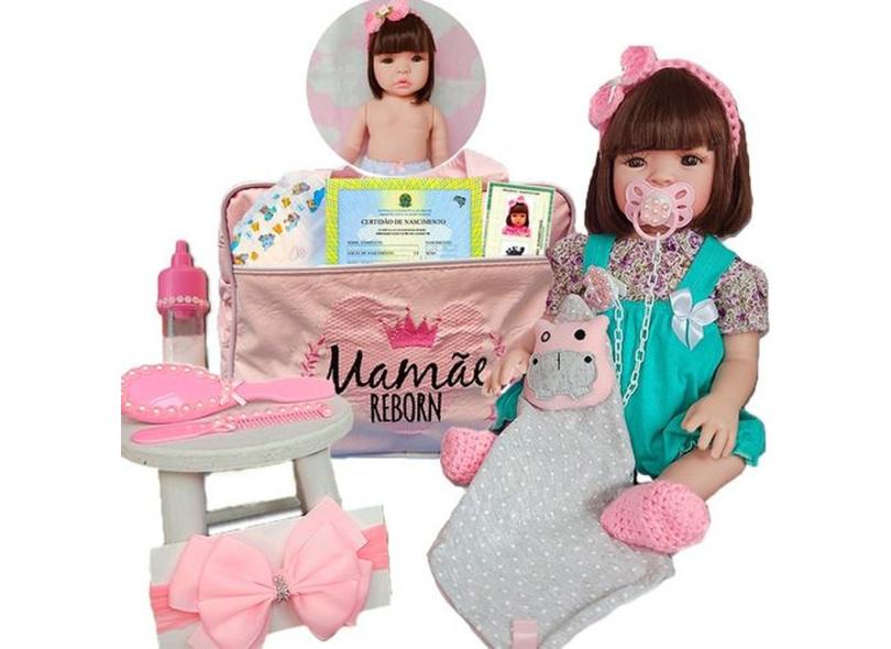 Bebê Reborn Menina 100% Silicone Enxoval Completo - 24 Itens