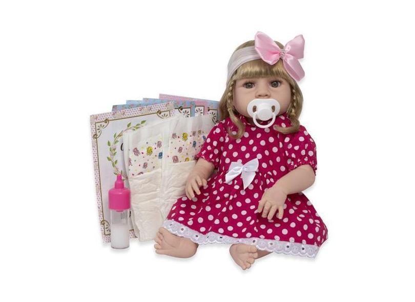 Bebe Reborn Menina Corpo 100% Silicone Enxoval Vestido Rosa - Cegonha