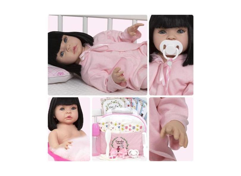 Bebê Reborn Menina Morena Linda Pagão Rosa Enxoval Completo - Cegonha
