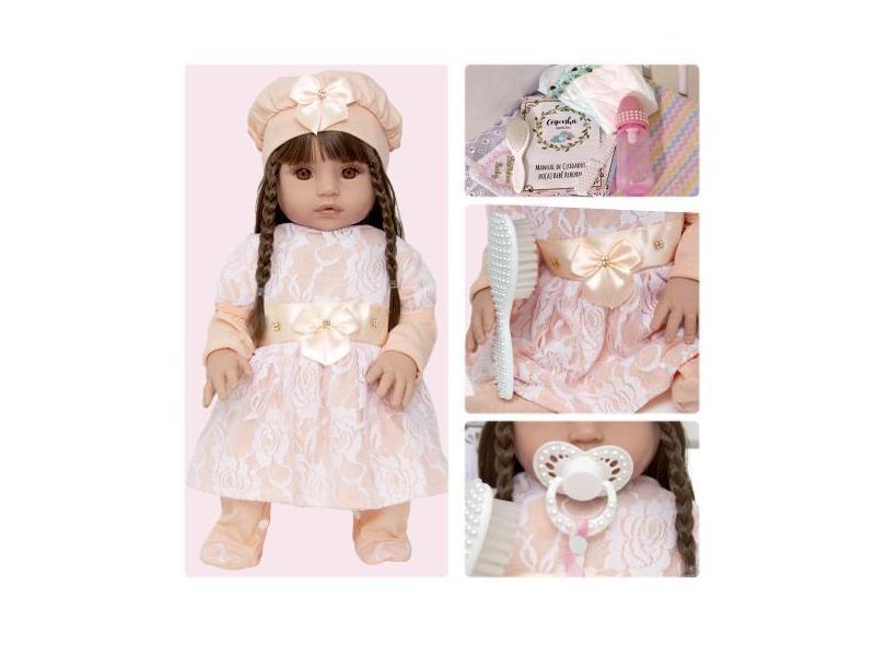 Bebe Reborn Menina Roupa Salmão Cabelos Castanhos Npk Doll