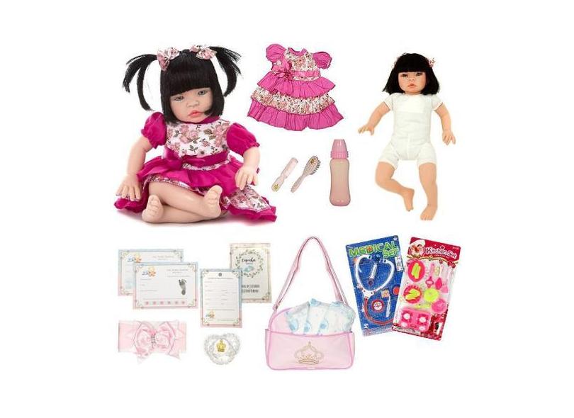Bebê Reborn Morena 3/4 Enxoval Baby Dolls 21 Itens De Pano - Cegonha R