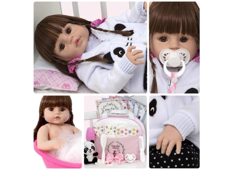 Bebê Reborn Panda De Silicone Realista + Bolsa 21 Acessórios