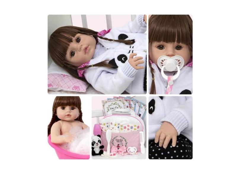 Bebê Reborn Panda De Silicone Realista + Bolsa 21 Acessórios - Cegonha