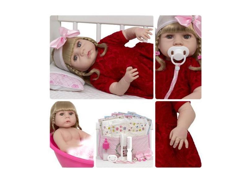 Bebê Reborn Realista Menina Loira Vestido Vermelho 20 Itens - Cegonha