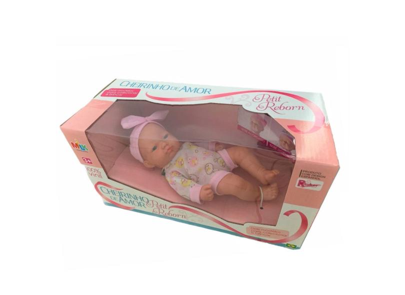 Boneca Bebê Petit Reborn Cheirinho de Amor Acordado Vinil