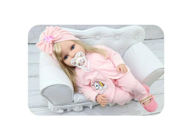 Boneca Bebê Reborn Isadora Realista Loira Lavinia Bebe Cegonha Dolls Com 52cm E 22 Itens