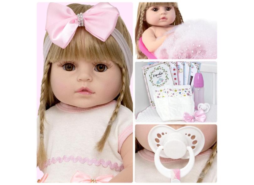 Boneca Bebê Reborn Loira Realista 100% Silicone 13 Itens