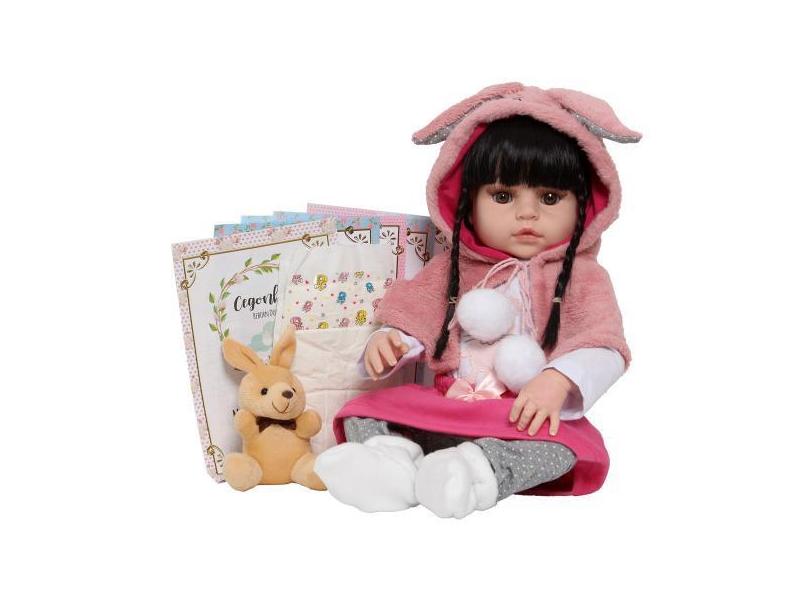 Boneca Bebê Reborn Menina Coelhinha Morena Linda 100% Vinil - Cegonha