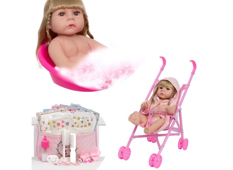 Boneca Bebê Reborn Menina Fofa Carrinho Rosa