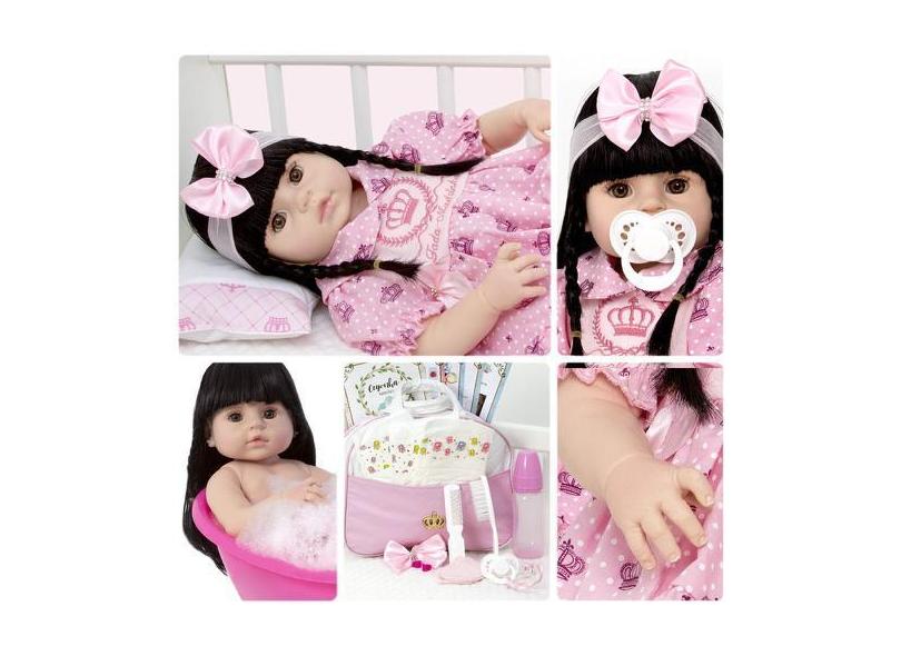 Boneca Bebê Reborn Menina Recem Nascida Morena + 20 Itens - Cegonha Re