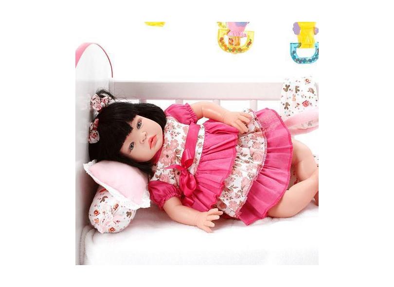 Boneca Bebe Reborn Menina Recém-Nascida Morena Com 23 Itens - Cegonha