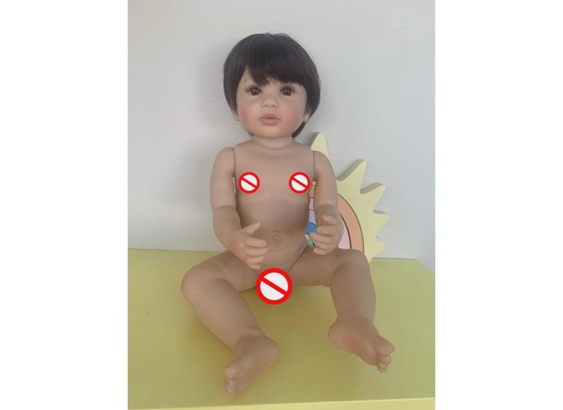 Boneca bebê reborn menino corpo vinil silicone macio 55 cm moreno