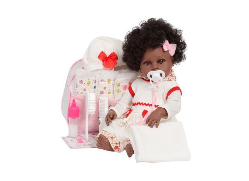 Boneca Bebê Reborn Negra Enxoval Completo Bolsa 20 Itens - Cegonha Reb