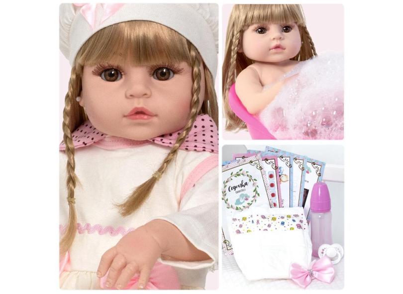 Boneca Bebê Reborn Realista Linda Cabelo Loiro 52cm Enxoval