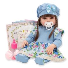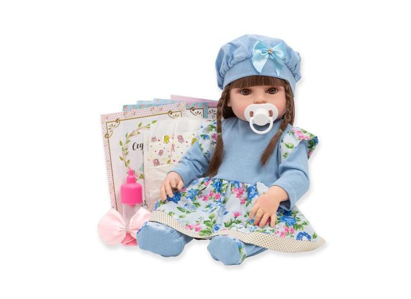 Boneca Bebe Reborn Realista Vestido Florido Azul 13 Itens - Cegonha Re