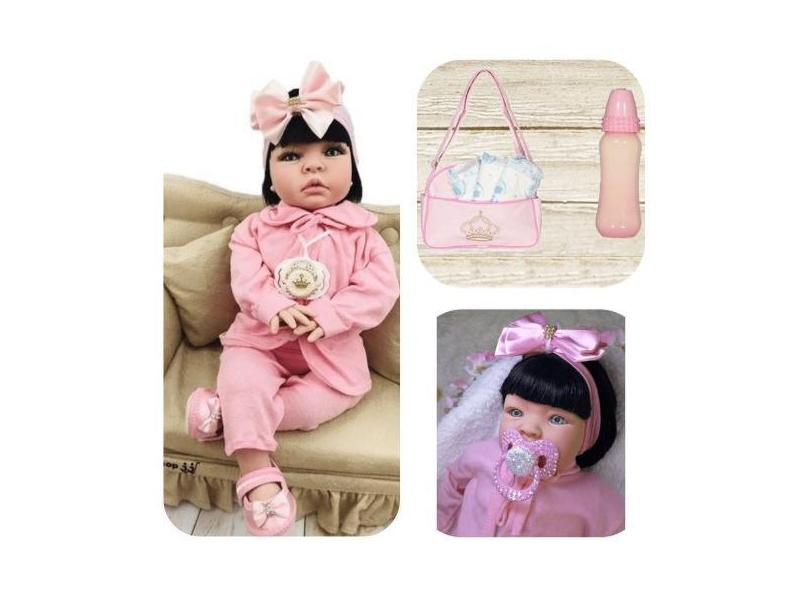 Boneca Bebe Tipo Reborn Morena Barata 17 Acessorios Premium - Cegonha