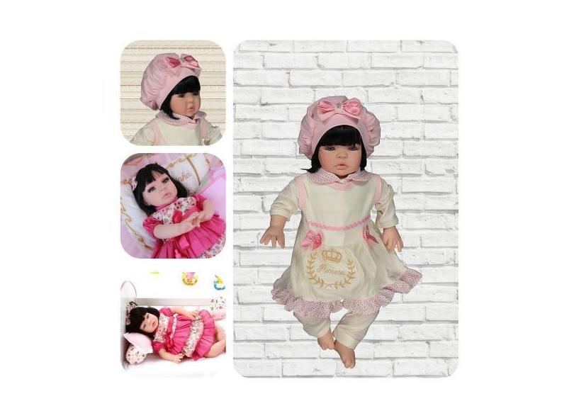 Boneca Bebe Tipo Reborn Morena Menina Ashley 23 Acessorios - Cegonha R