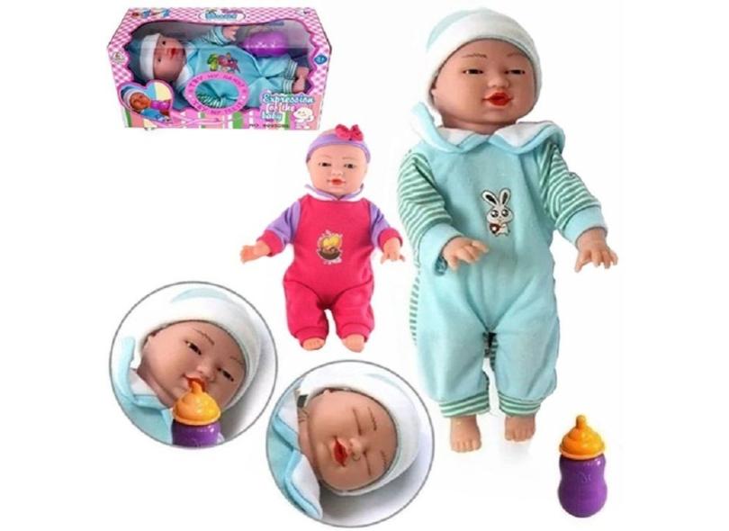 Boneca Kakau Bebe Expressao Facial Com Mamadeira Colors