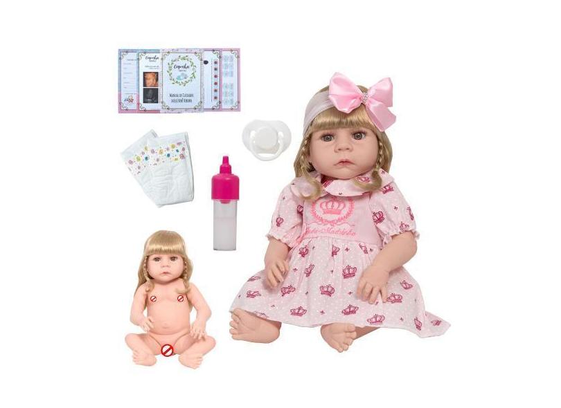 Boneca Reborn Bebe Loira 100% Vinil Siliconado Kit 13 Itens - Cegonha