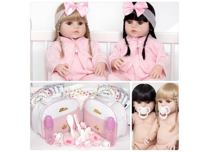 Boneca Reborn Gêmeas 100% Vinil Loira Morena Realista Itens