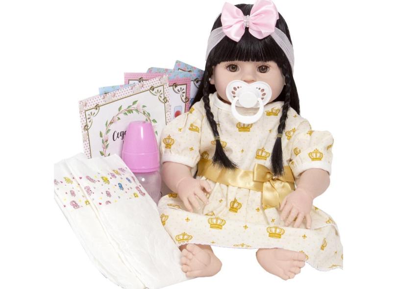 Boneca Reborn Realista de Vinil Siliconado Enxoval 13 Itens