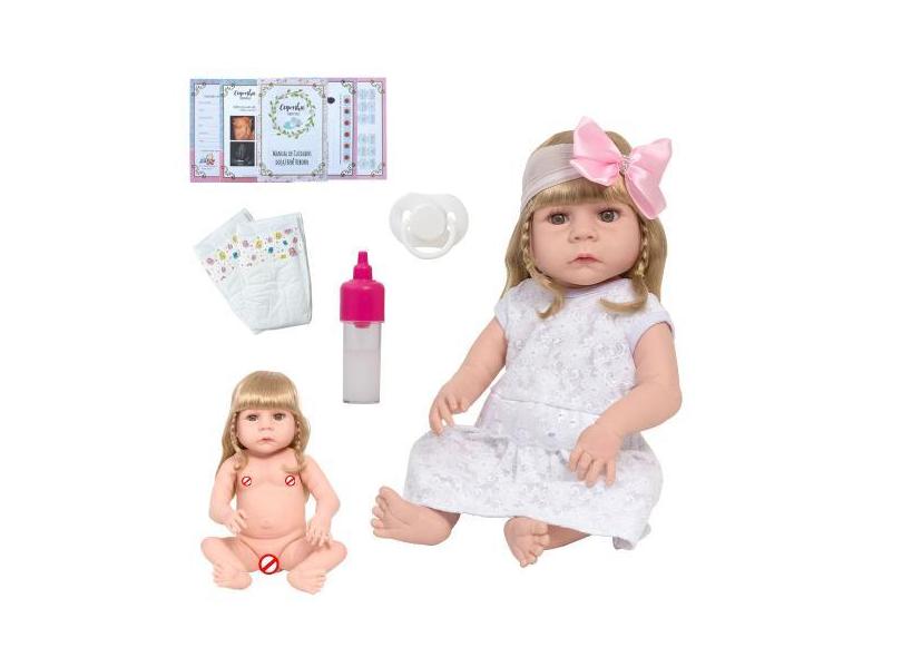 Boneca Reborn Recém Nascida Loira Completa Enxoval 13 Itens - Cegonha