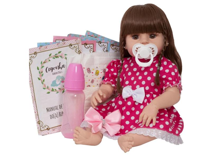 Boneca Reborn Silicone 46cm Cabelo Longo com Lindo Enxoval