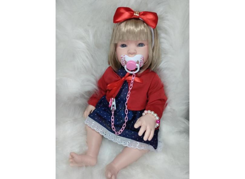 Boneca Tipo Bebê Reborn Loira Corpo Todo Em Silicone Baby Kiss
