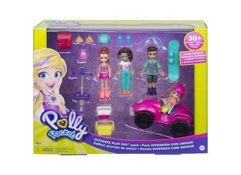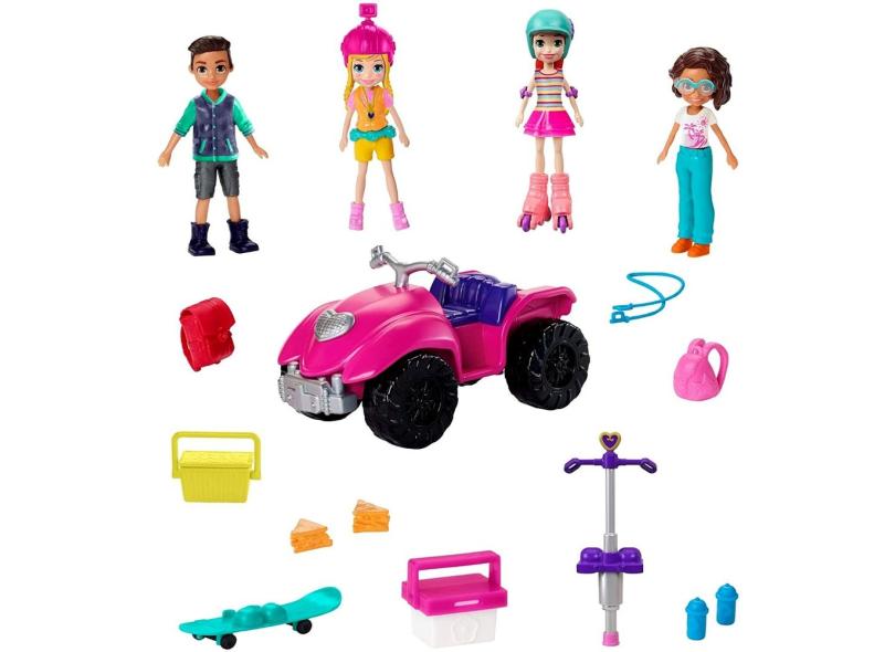 Conjunto Brinquedo Pacote Diversão Com Amigos - 04 Personagens Boneco Menino Nicolas E Bonecas Meninas Polly Pocket Lila E Shani - Com Quadriciclo E Acessórios Esportivos - Mattel