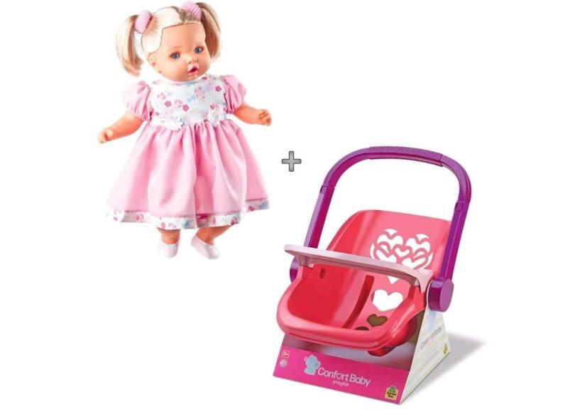Boneca Angelina Loira Fala 62 Frases mais bebe conforto passeio Kit