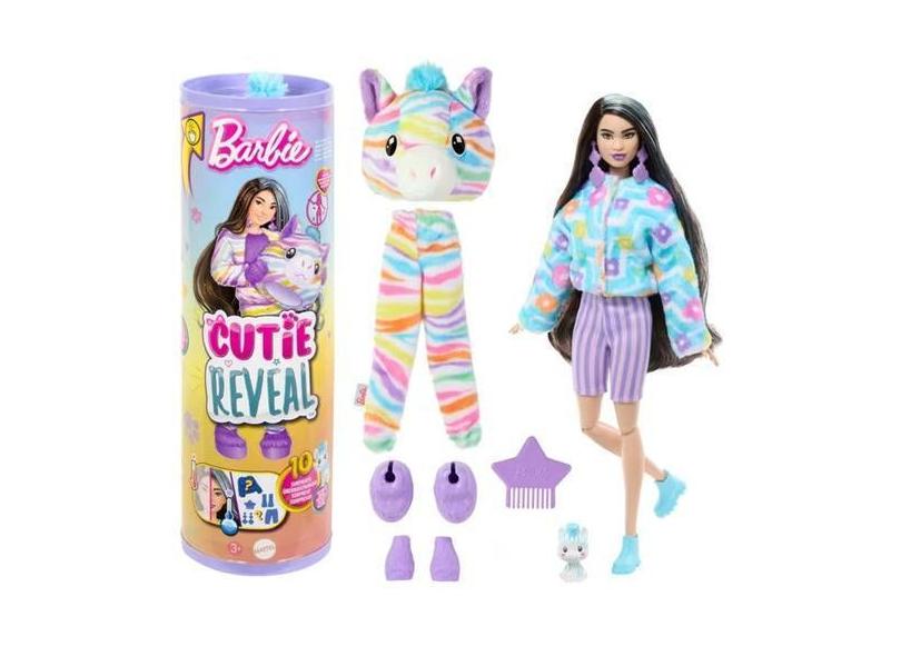 Boneca Articulada Barbie Cutie Reveal Zebrinha Colorida Com 10 Surpres