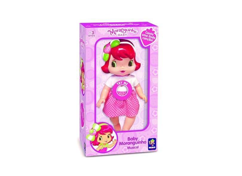 O menor preço encontrado no Brasil para BONECA BABY MORANGUINHO QUE CANTA - 30 CM - MIMO BRINQUEDOS - MORANGUINHO atualmente é R$ 89,54.