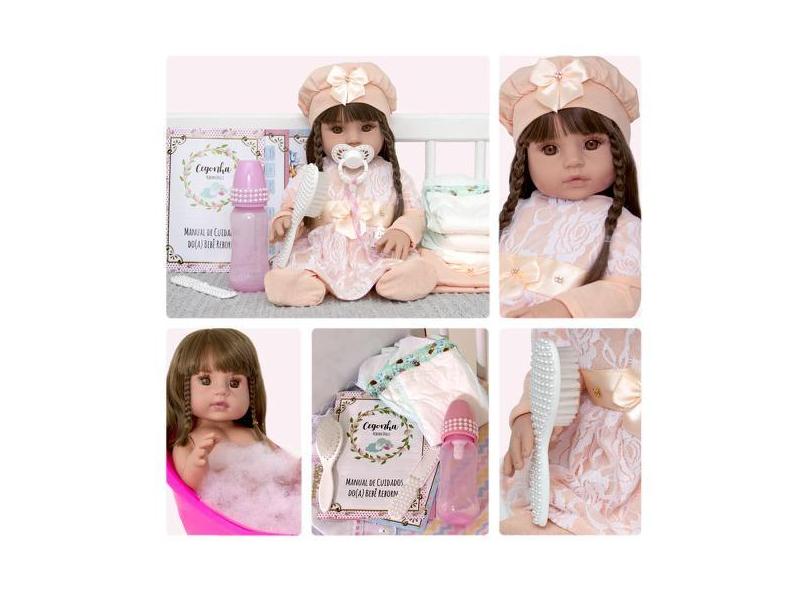 Boneca Bebe Realista Metoo Roupa Salmão Enxoval Completo - Cegonha Reb