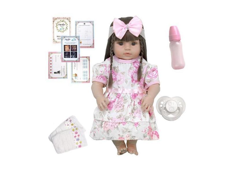 Boneca Bebe Reborn Bonita Olho Castanho 13 Itens Enxoval - Cegonha Reb