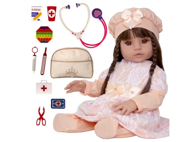 Boneca Bebe Reborn Bratz Cabelo Castanho e Acessórios npk