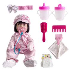 Boneca Bebê Reborn Design Detalhes Realista Silicone Enxoval Completo