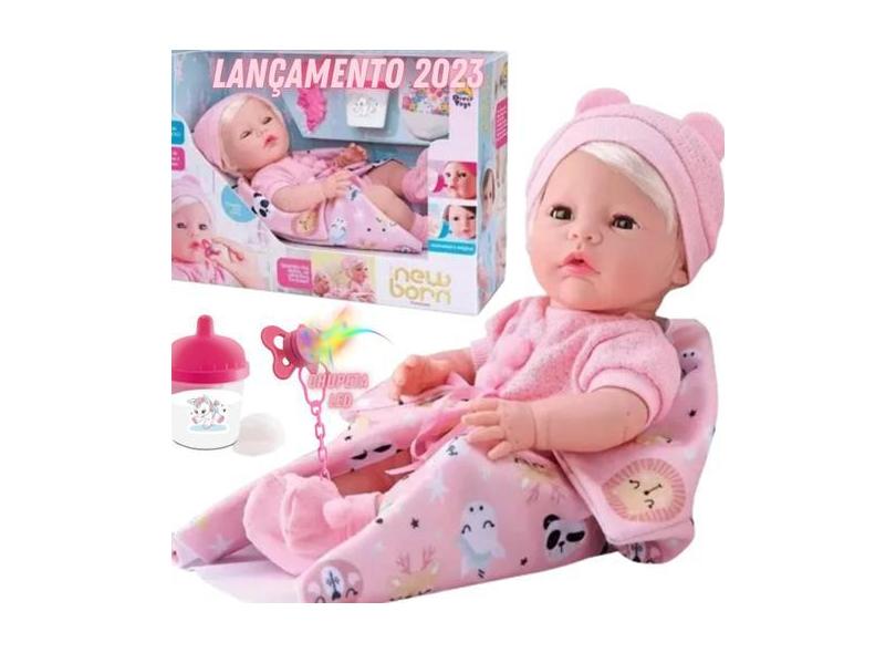 Boneca Bebê Reborn Diver Premium Chupeta Led Olhos Mágicos - Divertoys