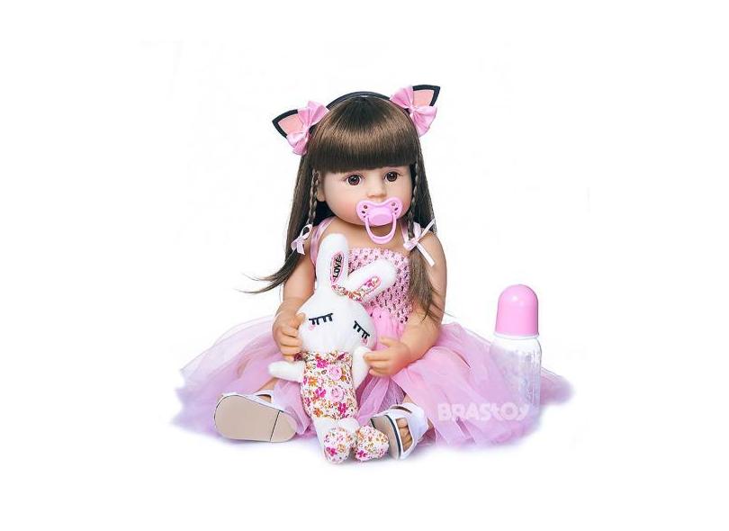 Boneca Bebê Reborn Gatinha 100% Silicone Com Mamadeira Chupeta E Conju