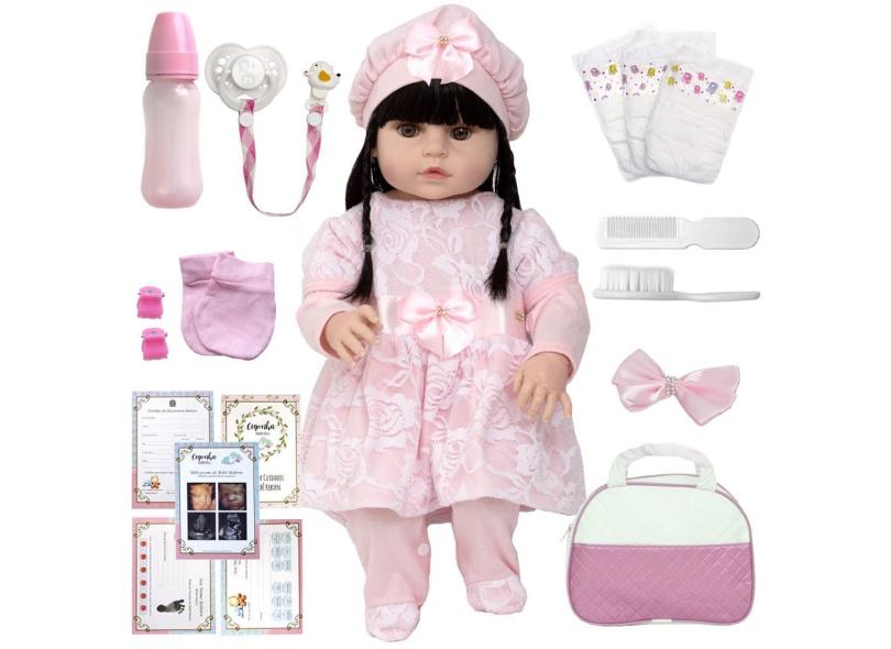 O menor preço encontrado no Brasil para Boneca Bebe Reborn Gatinha Morena Fofa Acessórios Enxoval atualmente é R$ 219,21.