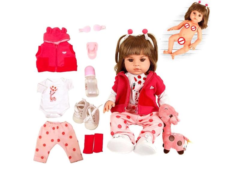 Boneca Bebê Reborn Girafinha Menina 100% Silicone 48cm