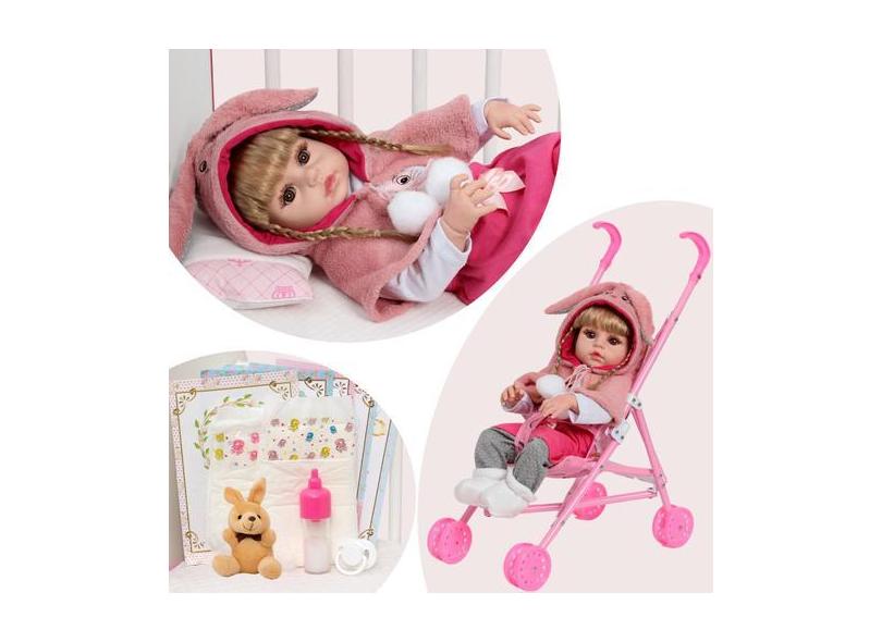 Boneca Bebê Reborn Menina Coelhinha Loira Linda Com Carrinho - Cegonha