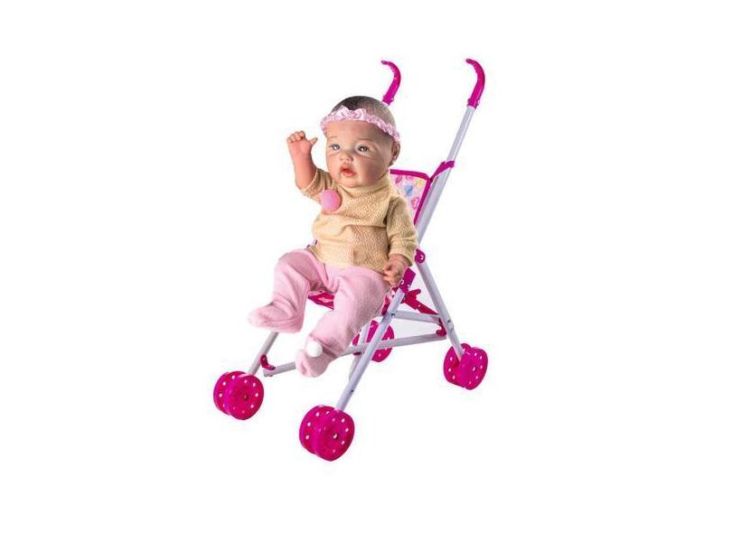 Boneca Bebê Reborn Menina Milk Brinquedos + Carrinho Rosa - Milk Brinq
