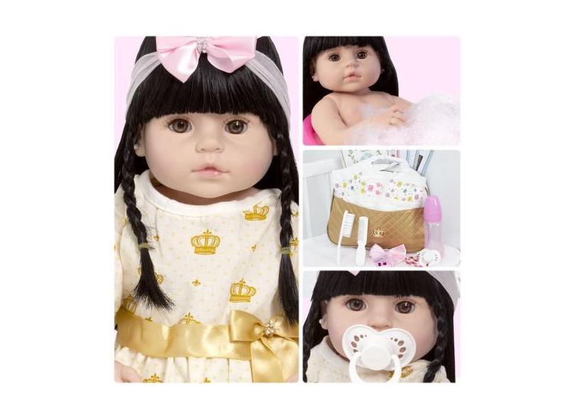 Boneca Bebê Reborn Menina Vestido Dourado Morena - Cegonha Reborn Doll