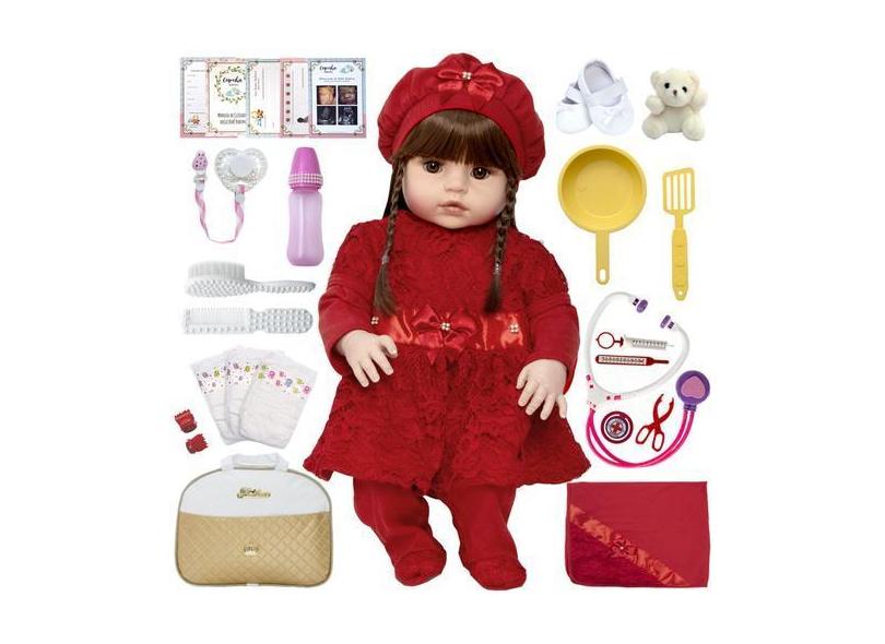 O menor preço encontrado no Brasil para Boneca Bebe Reborn Menina Vestido Vermelho + Itens - Cegonha Reborn Do atualmente é R$ 313,81.